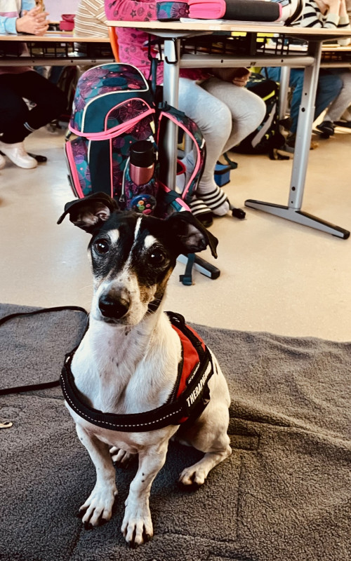 Emmi ist ein ausgebildeter Therapie- und Begleithund (Jack Russell Terrier) und begleitet mich bei der tiergestützten Arbeit in verschiedenen Einrichtungen. Die tiergestützte Arbeit erfolgt in Einzel- und Gruppenangeboten.
